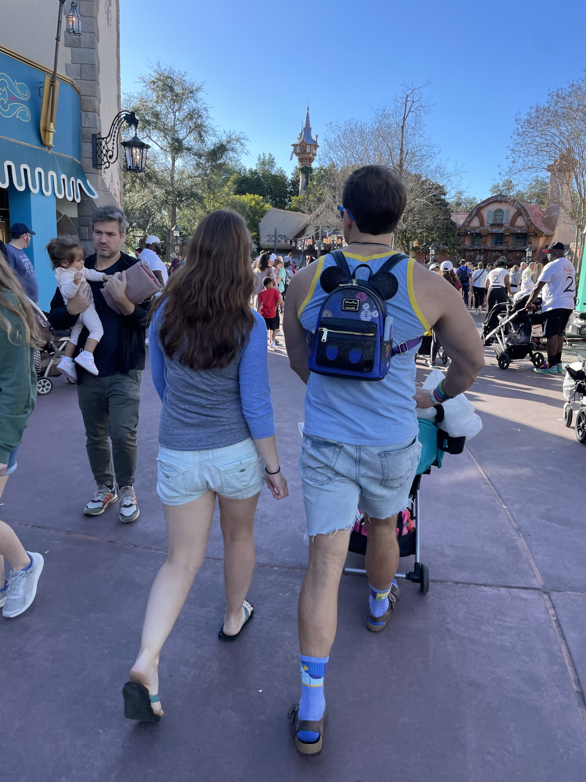- Storage: Ensure you have enough storage for snacks, rain gear, and souvenirs. While it’s common to leave items in strollers, avoid leaving valuables as theft can happen—even in the happiest place on earth. We keep our wallets and important items in small bags that we can take on rides.